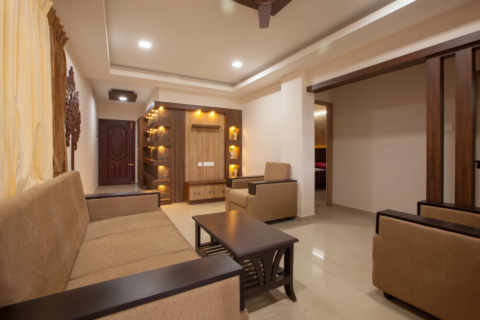 Les options de finition sont variées : surface parfaitement lisse peinte selon votre palette de couleurs, création d'éléments géométriques ou courbes, incorporation de matériaux décoratifs, réalisation de corniches ou voiles architecturaux. Chaque finition est harmonisée avec vos préférences et le caractère de votre intérieur.